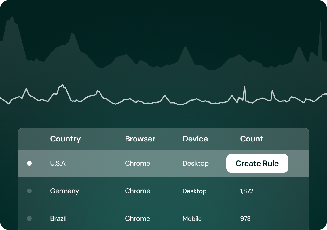 Don't just detect abuse, shut it down instantly. Use our powerful rules engine and built-in mitigation tools to respond to any level of risk and adapt in real-time.