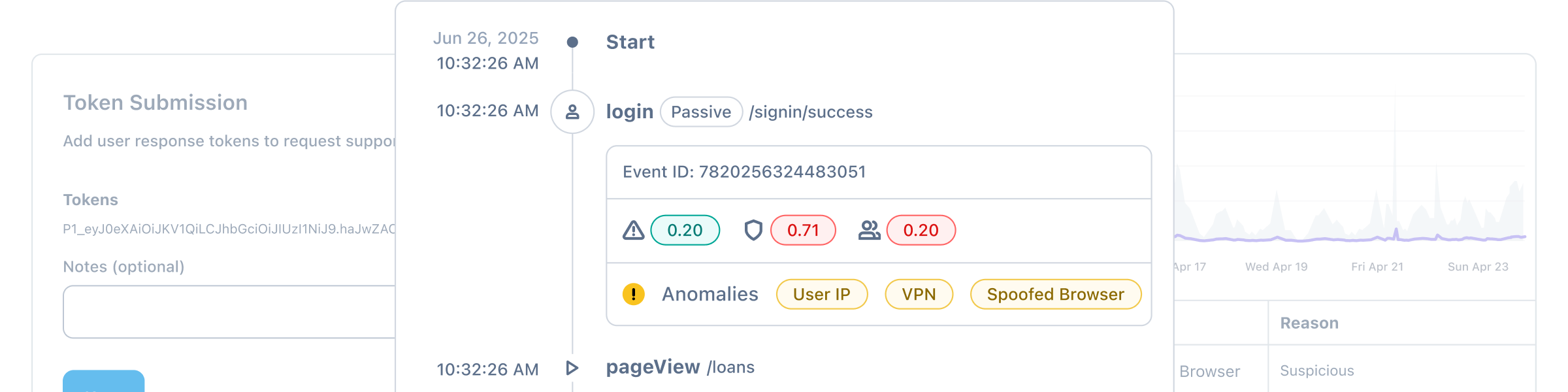 Our analytics, real-time insights, anomaly views, and SOC assistance give your team everything they need to surface any first-party fraud or application abuse. Investigate and validate suspicions.