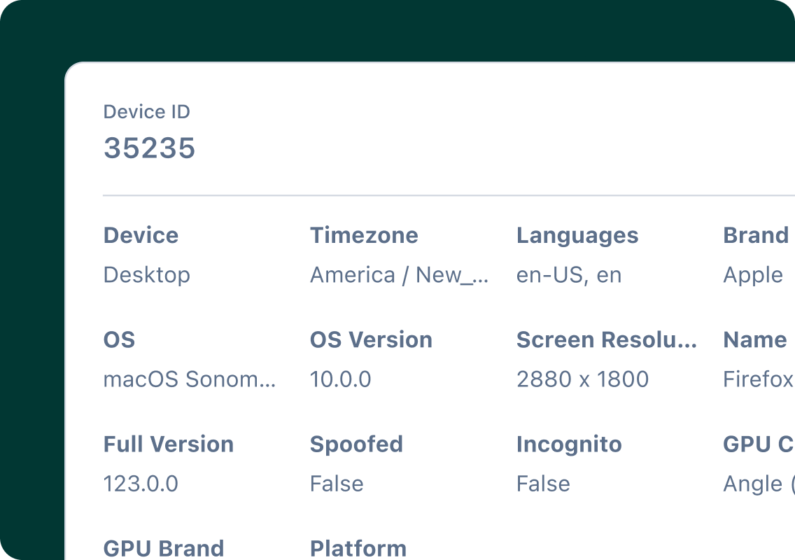 Give your systems and analysts new signals to distinguish real users from threats, while preserving privacy with our Zero PII design.