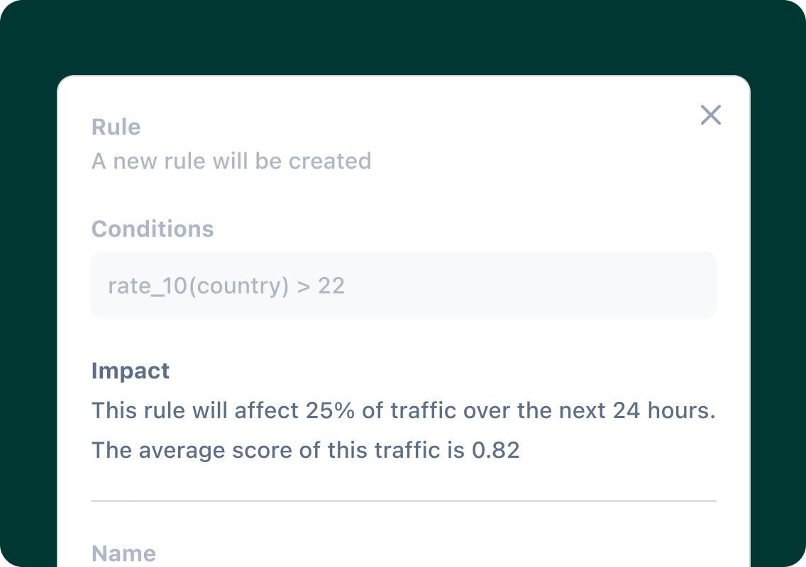 Define and execute real-time decisions with flexible no-code rule builders.
